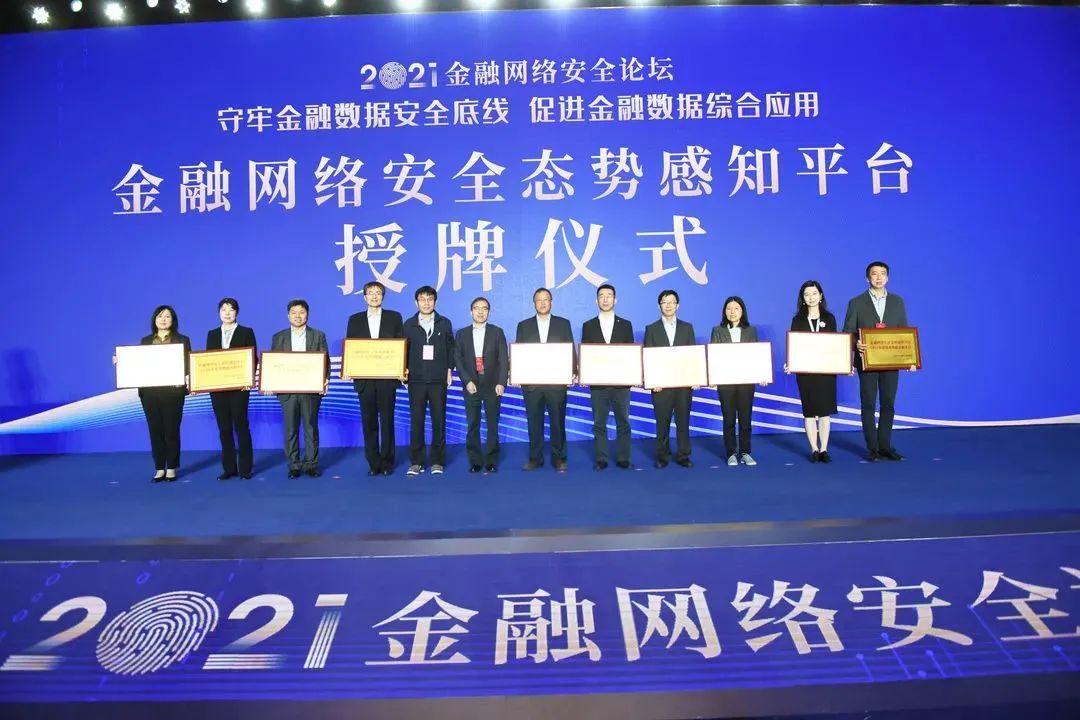 随后,举办方为中国工商银行等23家金融网络安全态势感知平台贡献单位授牌,并为11家2021年陕西省金融业“网络安全‘陕’出来”活动获奖代表颁奖。