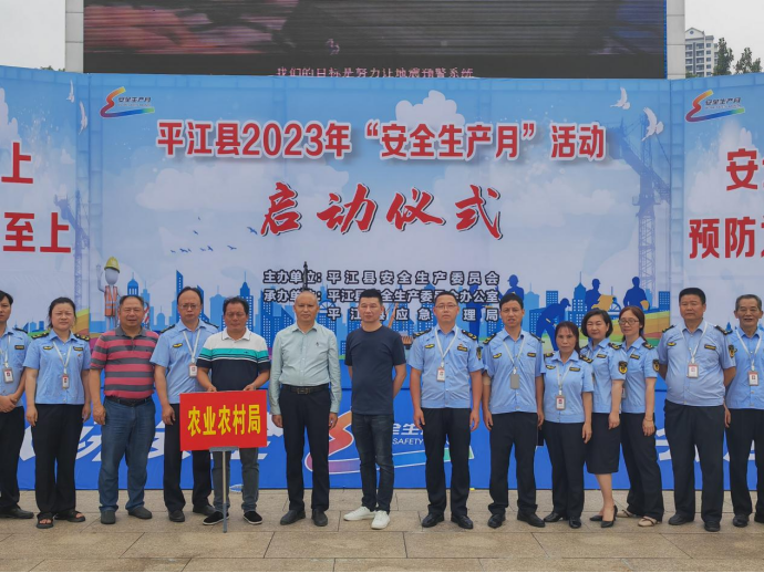 安全是最大的效益,抓好安全生产才能营造良好的营商环境。223年6月是全国第22个“安全生产月”,6月14日,平江县农业农村局组织30余名干部职工到天岳广场开展2023年“安全生产月”活动启动仪式和现场集中宣传活动。