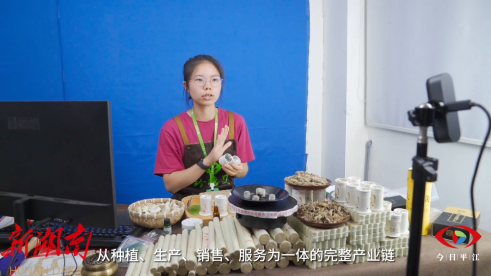 李桂林介绍,目前,“珍德艾”已形成集艾草种植、加工、销售、服务为一体的产业链,研发生产了艾条、艾枕、艾香、艾叶包等10余种产品。线下实行订单式+实体销售,乘着康养及大健康产业的东风,辐射平江县中医院以及全县多家养生馆。线上利用电商平台及直播带货等渠道,把产品销往省内外。前不久,公司通过直播带货,一个月最高销售额达20余万元。线上+线下,公司年产值在1000万元以上。