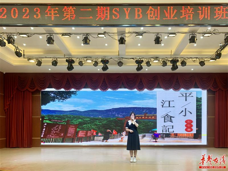 近日,平江县2023年第二期SYB创业培训班结业典礼在平江职校报告厅举行。典礼最“秀”环节,是学员的创业项目展演。
