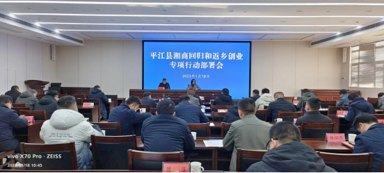 自全省湘商回归和返乡创业招商专项行动启动以来,平江县委、县政府高度重视,迅速行动,县委书记、县长牵头研究部署,成立平江县湘商回归和返乡创业专项行动工作领导小组,制定了未来三年内返乡创业户数达到全县外出经商务工总人数的5%以上、湘商回归项目每年达到50个以上的目标,明确要进一步提升政务服务水平,营造更优的营商环境,力争专项行动取得实实在在的效果。