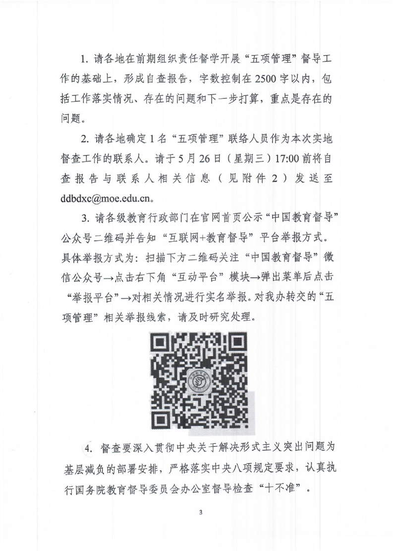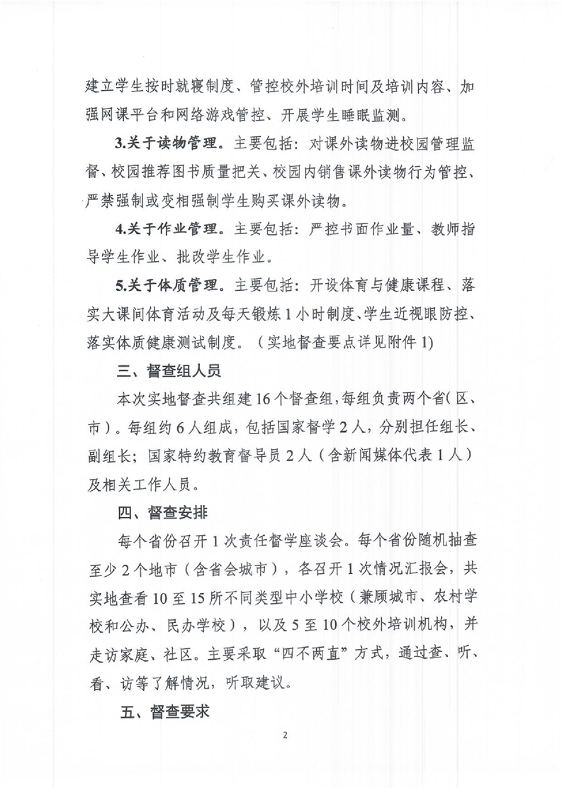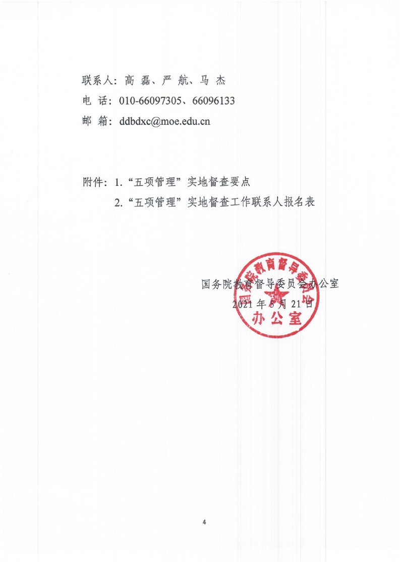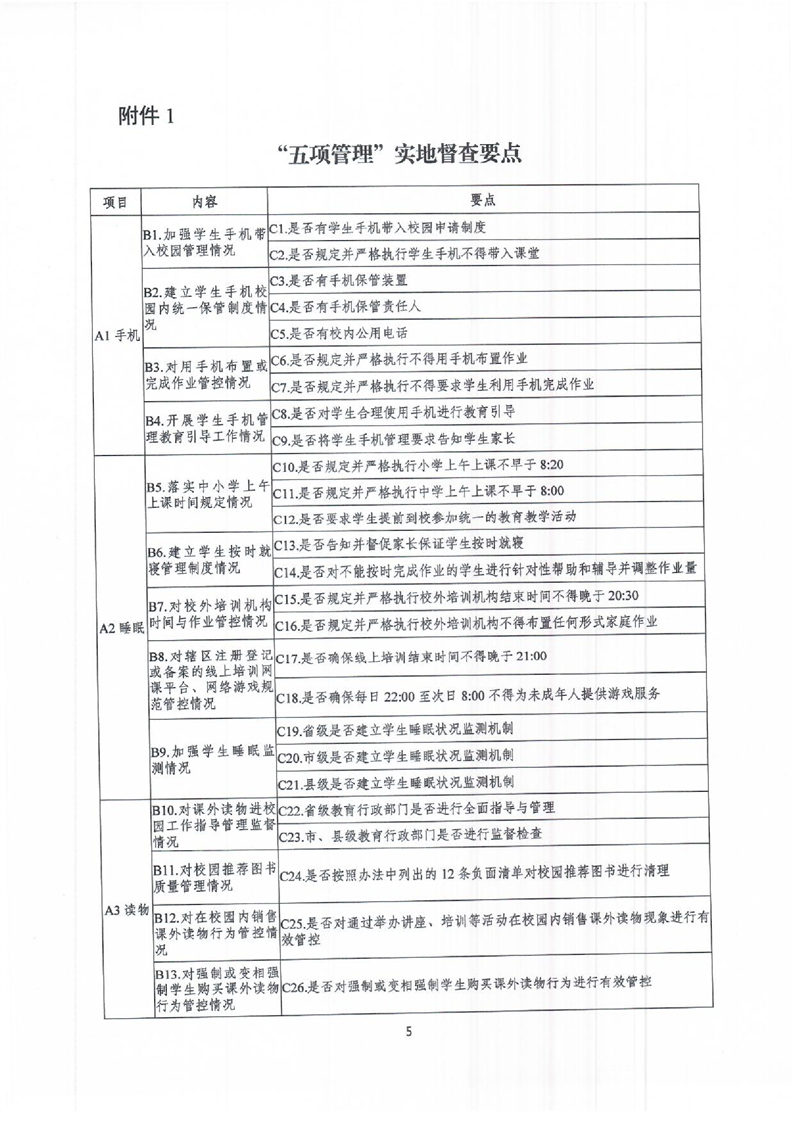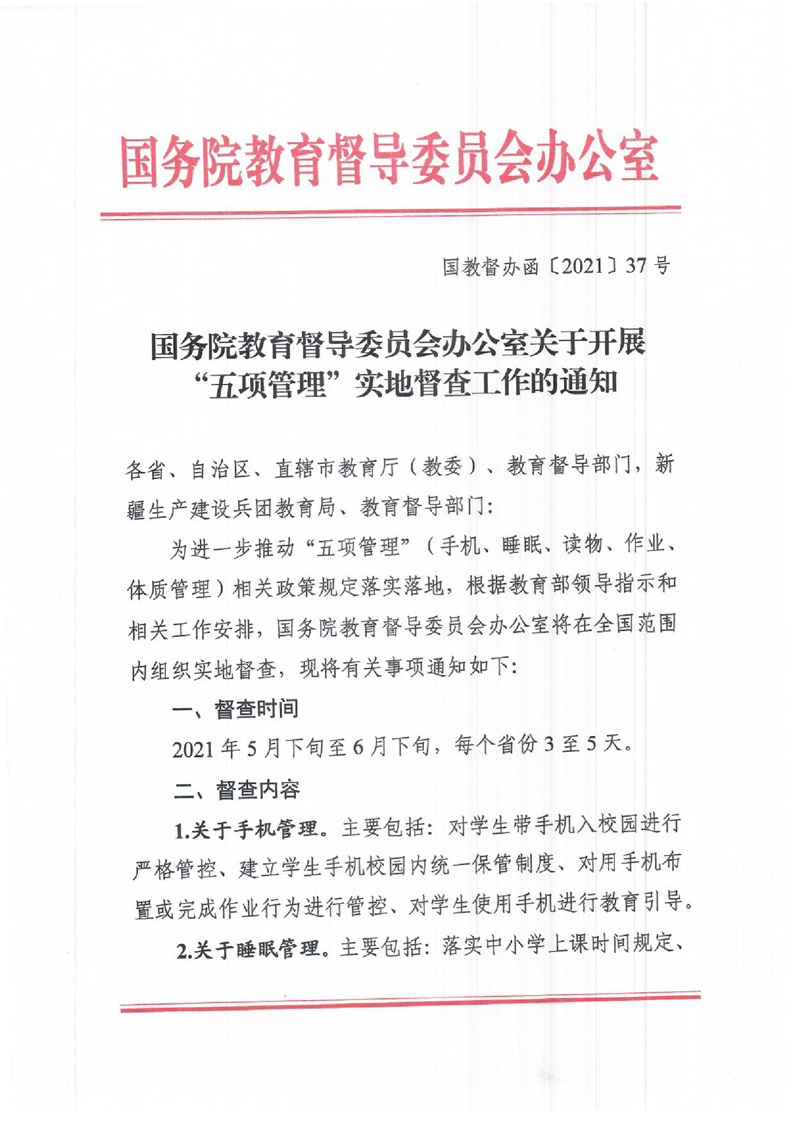 国务院教育督导委员会办公室关于开展 “五项管理”实地督査工作的通知