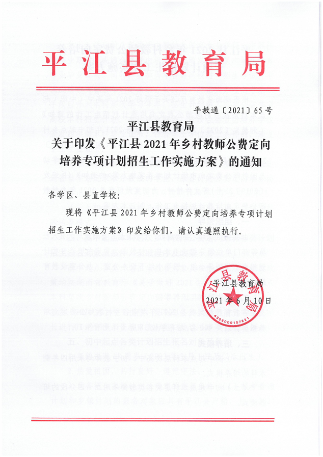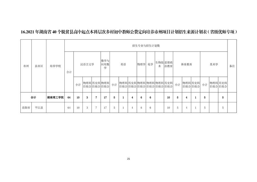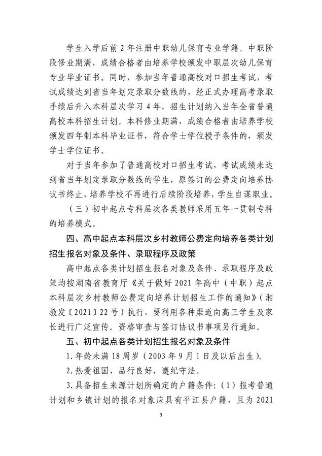 湘教发〔2021〕21号 关于做好2021年初中起点乡村教师公费定向培养计划招生工作的通知.pdf