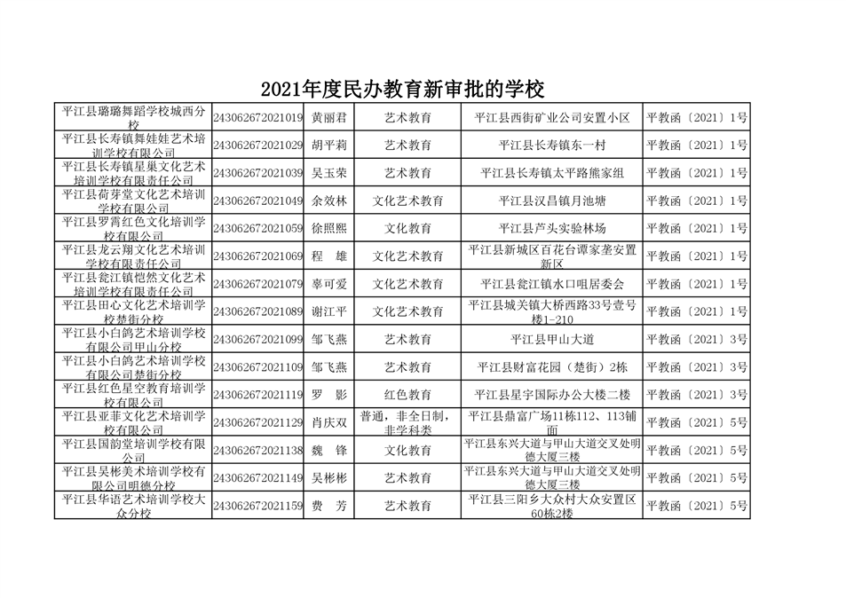 2021年度民办教育新审批的学校