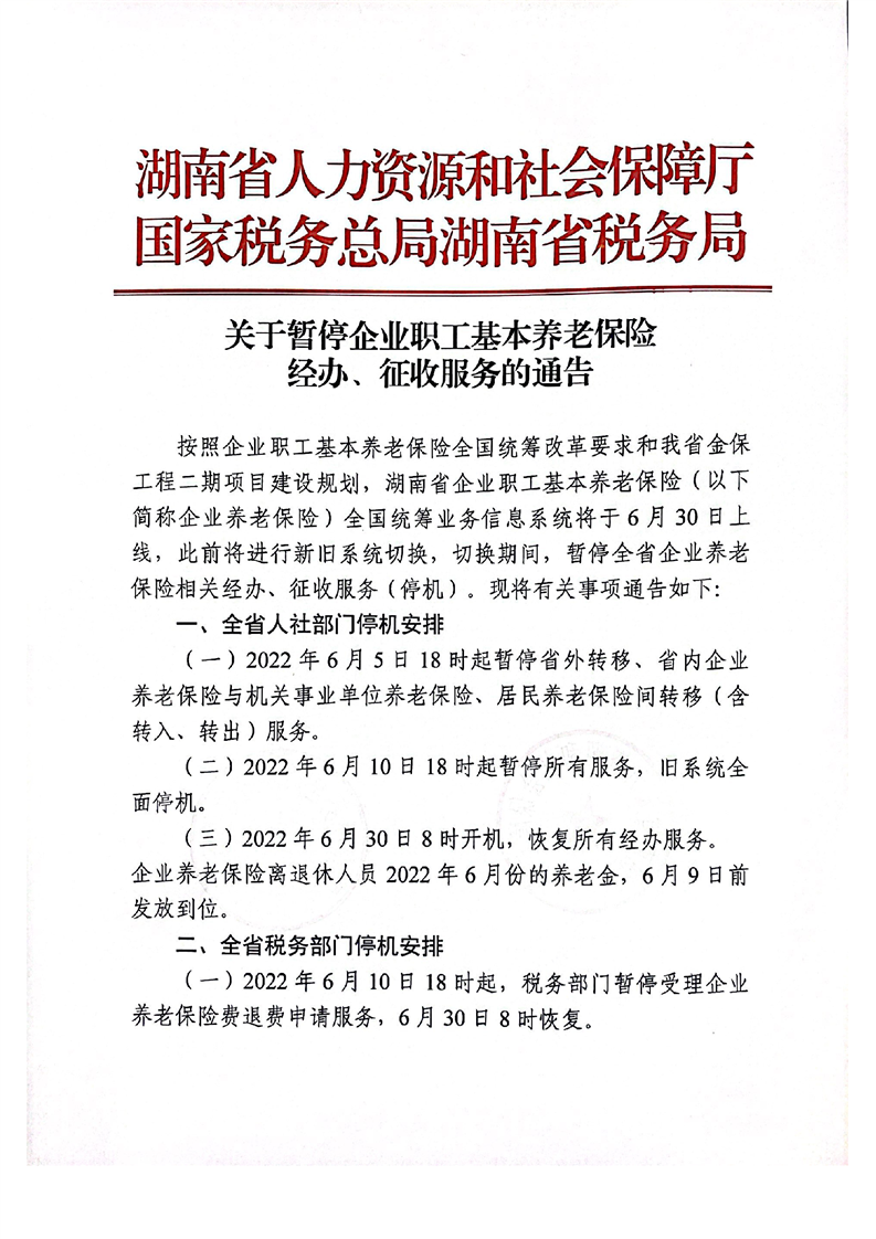关于暂停企业职工基本养老保险经办、征收服务的通告