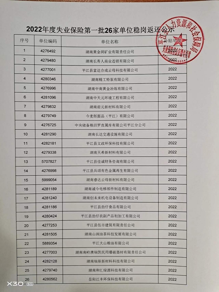 2022年失业保险第一批26家单位稳岗返还名单公示