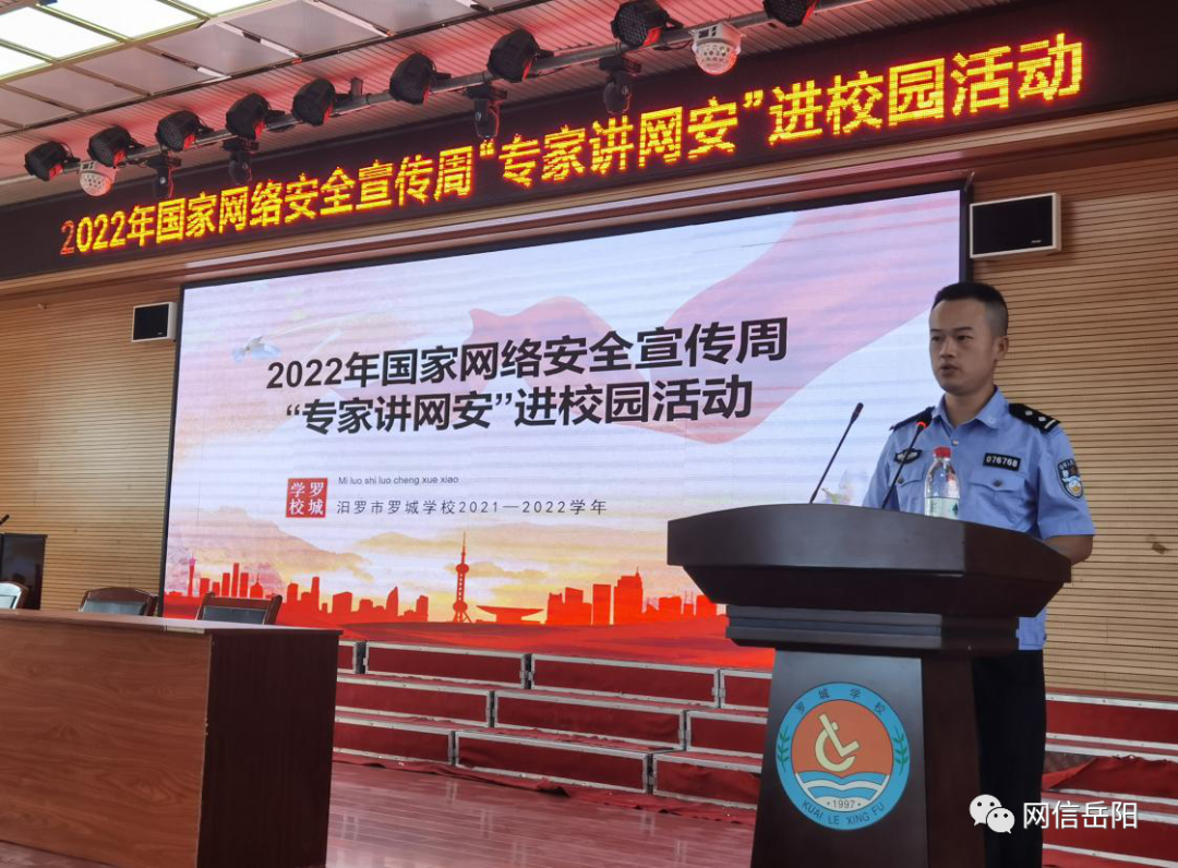 9月6日,结合“校园日”在汨罗市罗城学校开展“百名专家讲网安”活动