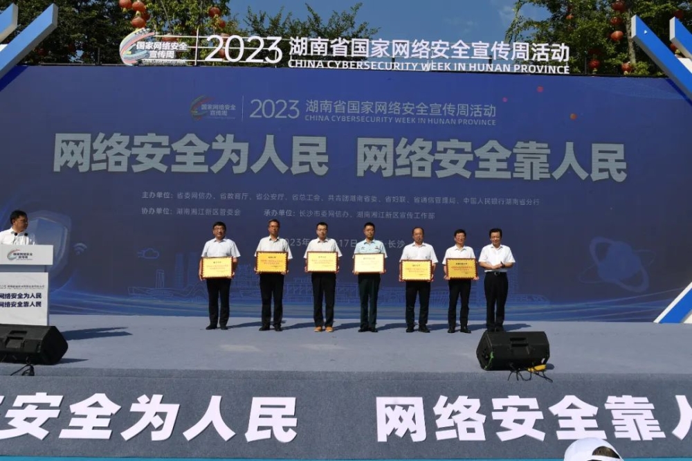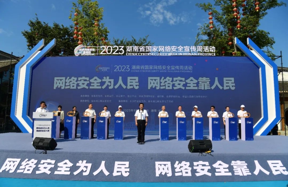 9月11日,湖南省2023年国家网络安全宣传周活动在湖南湘江新区启动。副省长秦国文出席启动仪式,为2023年“湖湘杯”网络安全应急演练特等奖单位和首批湖南省一流网络安全院系建设示范项目高校颁奖、授牌。省委宣传部副部长(兼)、省委网信办主任刘学出席仪式并讲话,长沙市副市长彭涛和湖南湘江新区(长沙高新区)管委会主任、岳麓区区长何朝晖致辞。省委网信办副主任郭天保主持启动仪式。