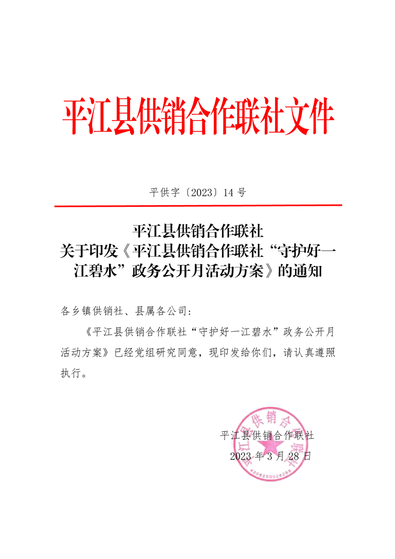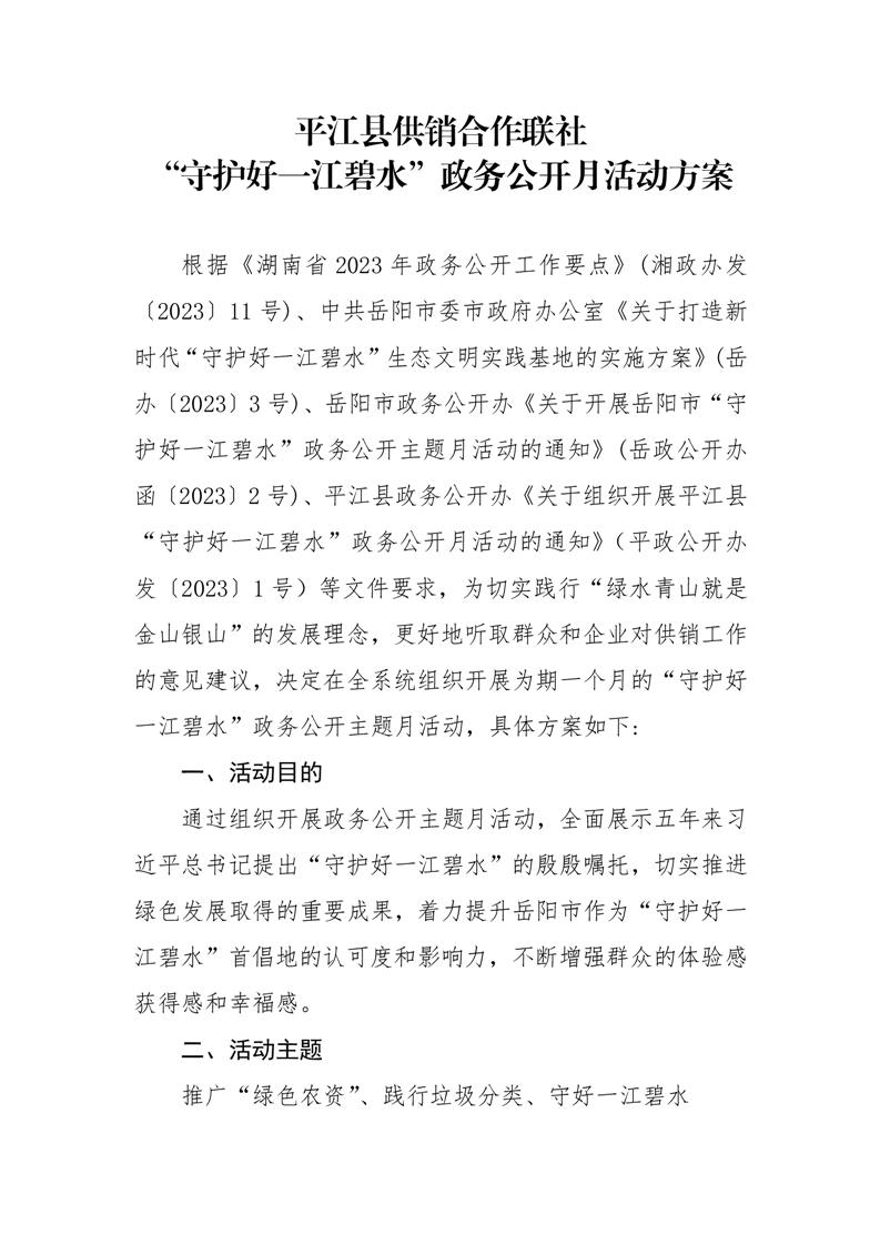 县供销合作联社关于组织开展“守护好一江碧水”政务公开月活动方案