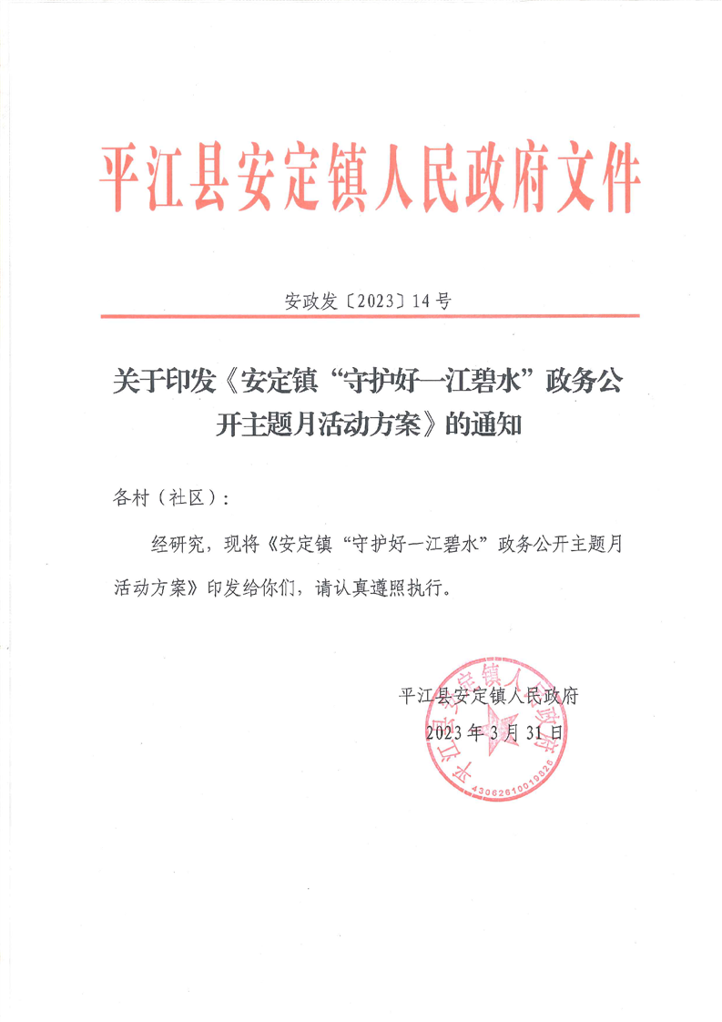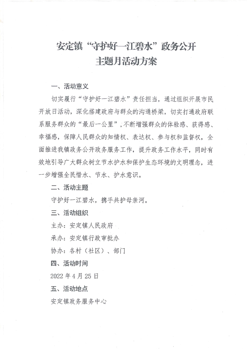 安定镇关于组织开展“守护好一江碧水”政务公开月活动方案