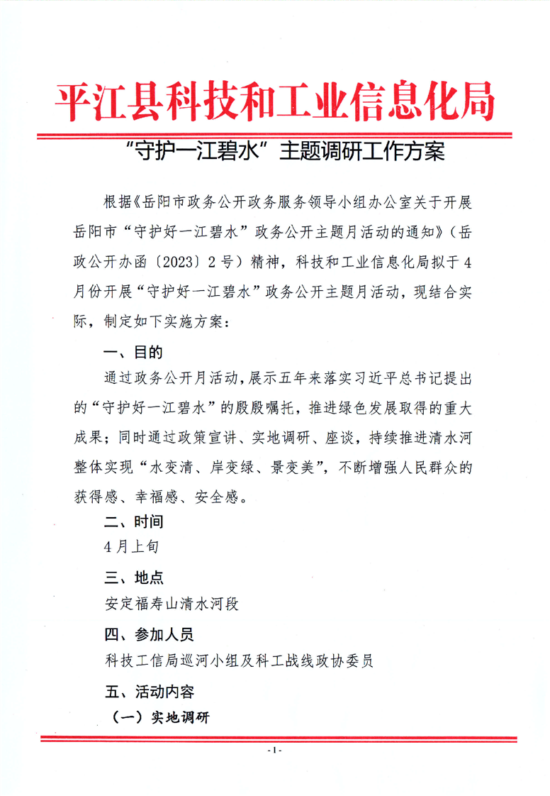 县工信局关于组织开展“守护好一江碧水”政务公开月活动方案