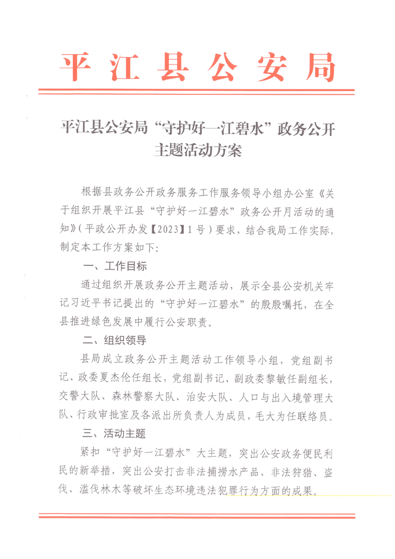 县公安局关于组织开展“守护好一江碧水”政务公开月活动方案