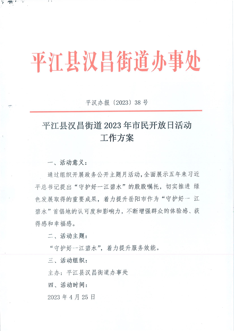 汉昌街道关于组织开展“守护好一江碧水”政务公开月活动方案
