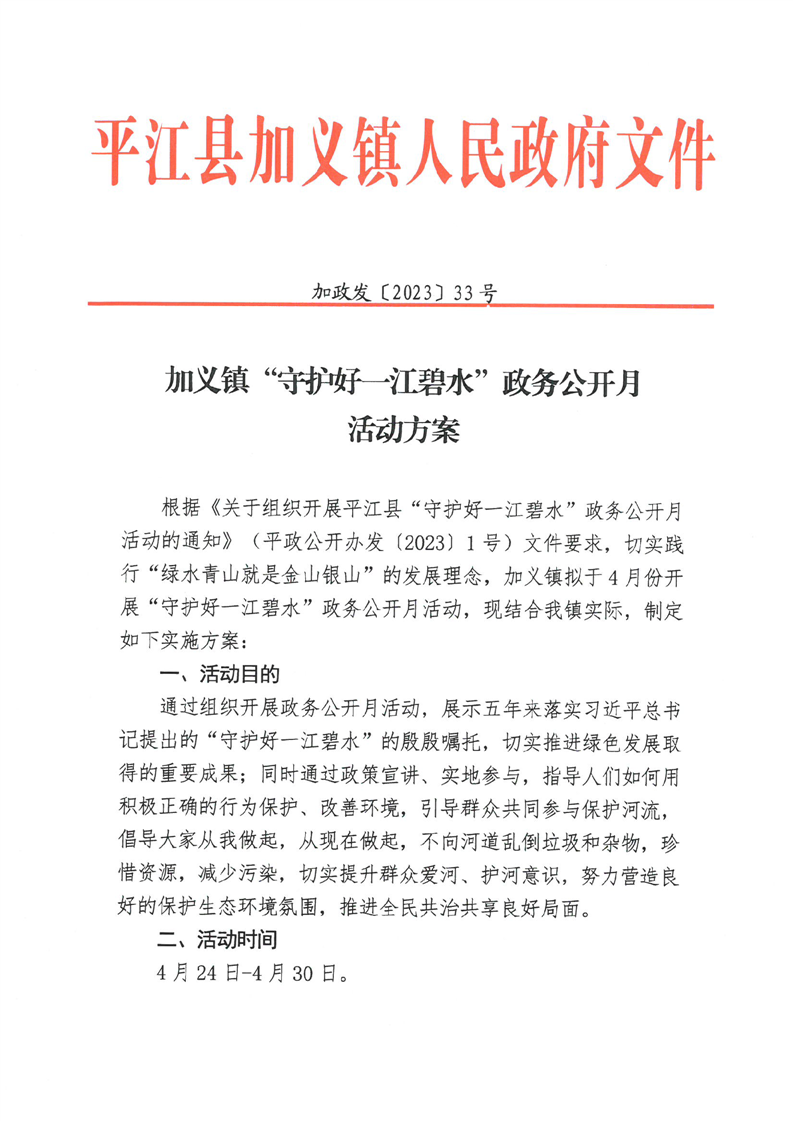 加义镇关于组织开展“守护好一江碧水”政务公开月活动方案