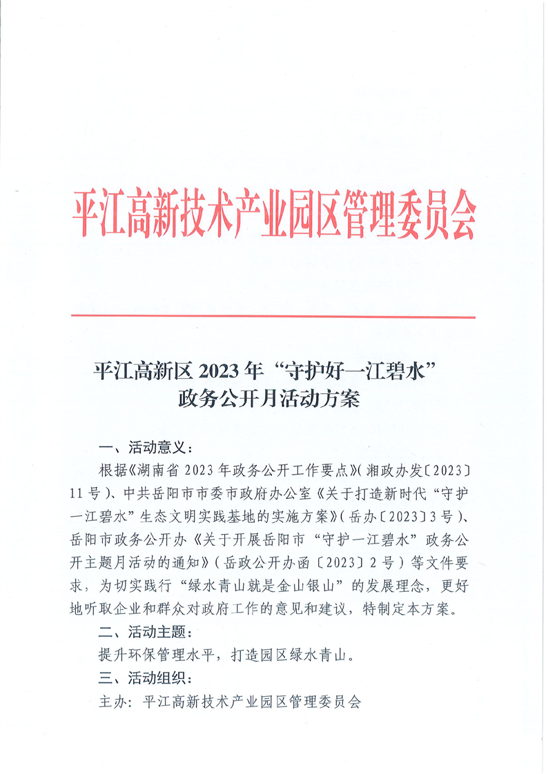 平江高新区关于组织开展“守护好一江碧水”政务公开月活动方案