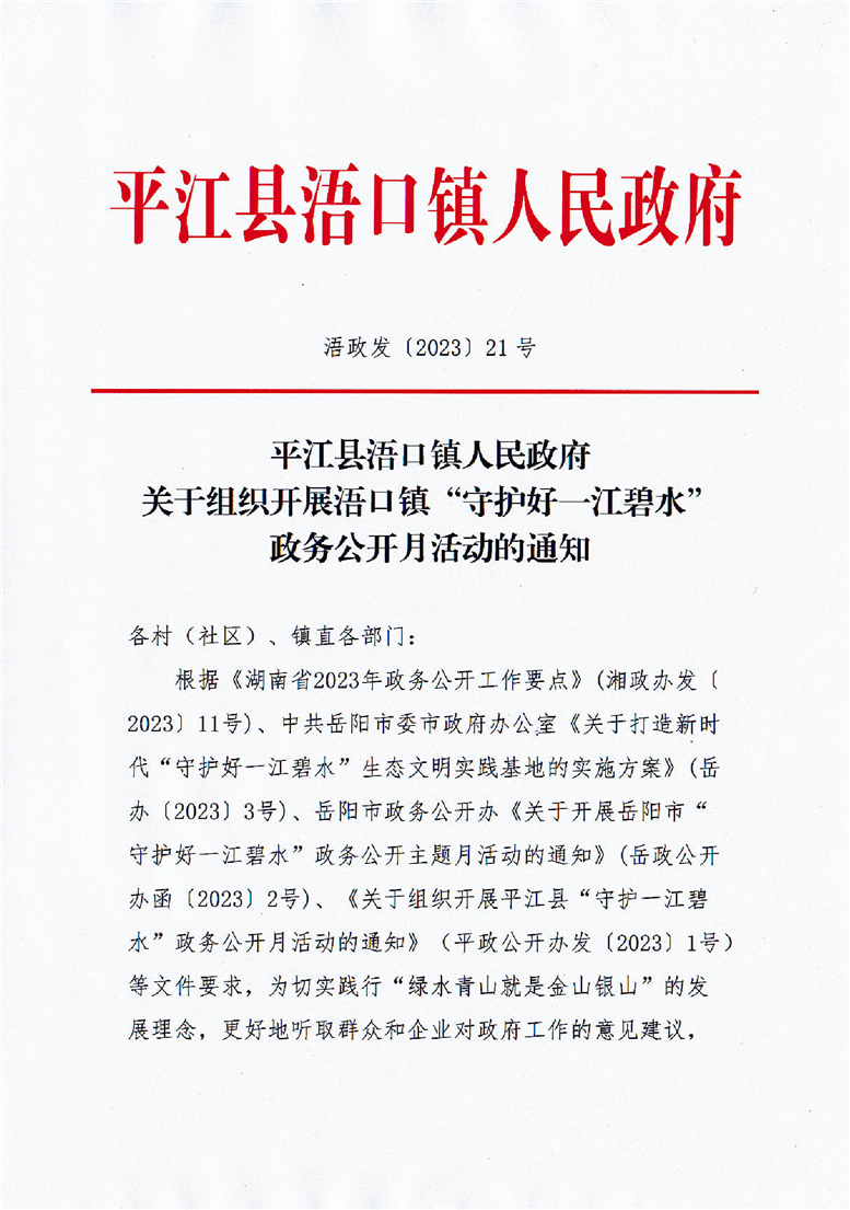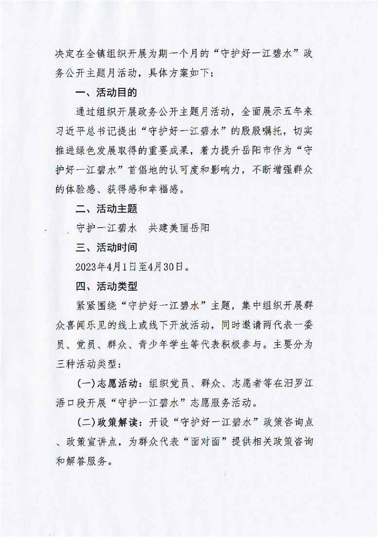 浯口镇关于组织开展“守护好一江碧水”政务公开月活动方案