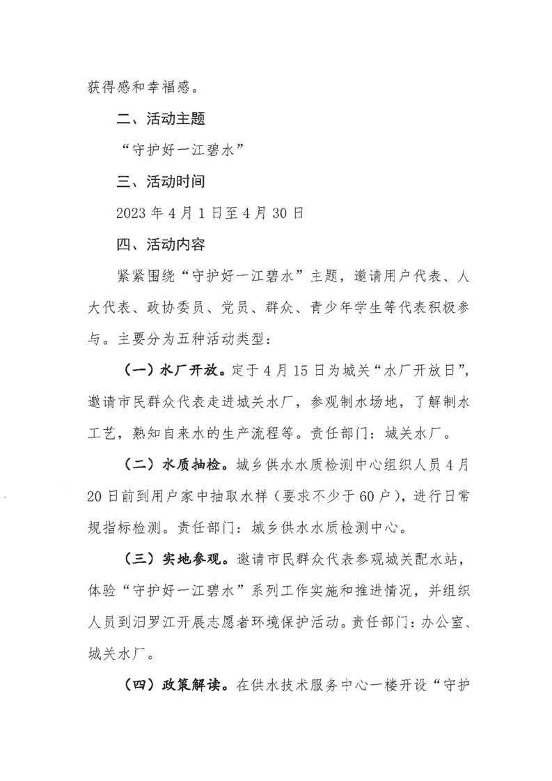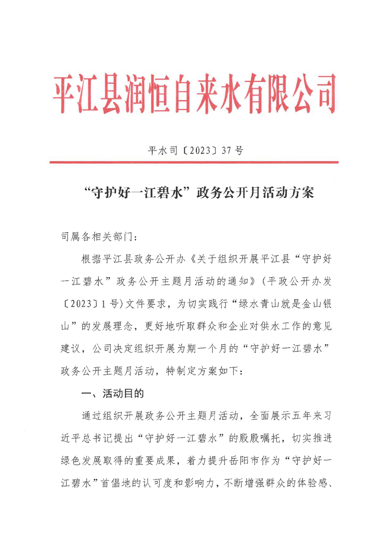 县润恒自来水有限公司关于组织开展“守护好一江碧水”政务公开月活动方案
