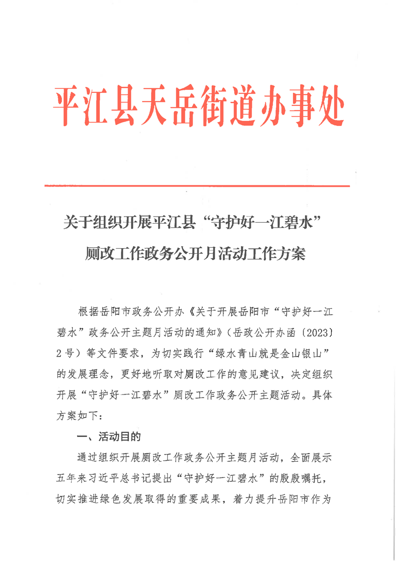 天岳街道关于组织开展“守护好一江碧水”政务公开月活动方案