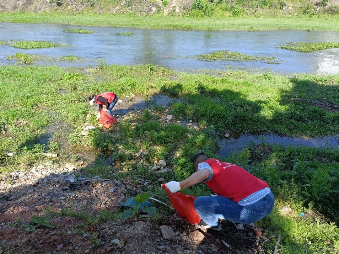 活动现场气氛热烈,志愿者们热情高涨,大家按照事先分组,一手拿着火钳、一手提着垃圾袋,沿着河流,边走边拾捡垃圾和杂物;马路上、草丛里、河流边,志愿者们不怕脏、不怕累,所过之处,垃圾均被细致拾捡。