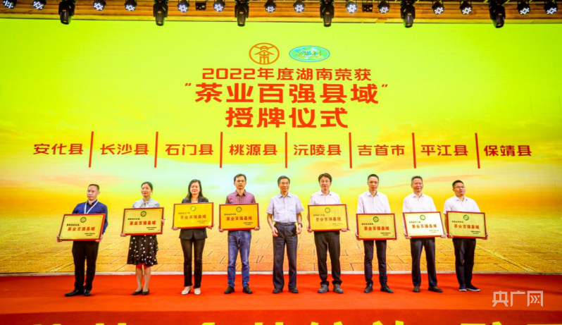 会上,中国茶叶流通协会授予平江县“茶旅融合示范区”牌匾,并授予湖南省安化县、长沙县、石门县、桃源县、沅陵县、吉首市、平江县、保靖县“2022年度茶业百强县域”称号。