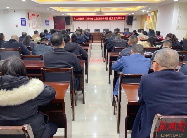 为全面提升园区诚信意识,平江高新区多次组织召开《湖南省社会信用条例》宣传解读培训会,为园区干部和企业详细解读《条例》内容,为《条例》的贯彻实施创造良好的社会环境,让信用工作有法可依、有据可循。除此以外,高新区还通过发放宣传册,向园区企业普及惠企政策和信用知识,解答相关问题,积极引导企业及时关注信用记录,增强企业诚信意识,构建全社会共同参与信用建设的良好局面。