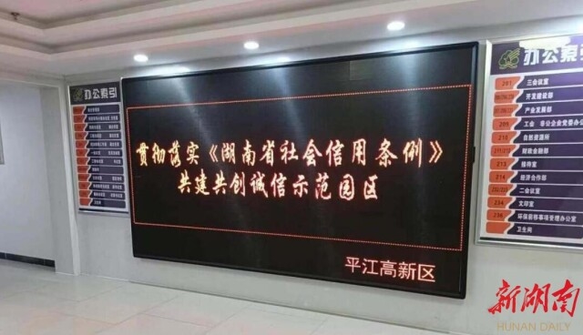 “谢谢你们及时告诉并帮助我们进行信用修复工作,让企业发展没有受到影响。”近日,平江高新区某食品企业负责人感激地对管委会工作人员说道。这是平江高新技术产业园区为进一步拓宽园区服务,提升园区职能,持续推动诚信园区创建工作的一个缩影。
