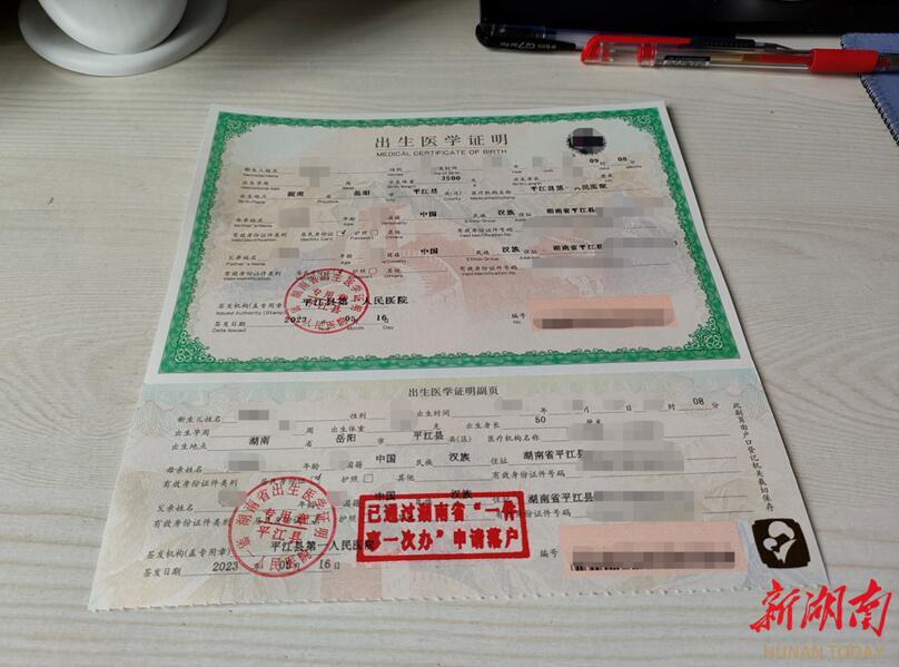 平江县自2020年启动“新生儿出生一件事一次办”以来,多部门联动,已全面实行新生儿出生医学证明、户口登记、医保参保登记等事项“一窗式受理、一站式服务”,实现县乡全覆盖。