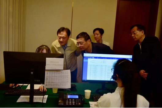 图为督察组组长蒋卓庆和副组长翟青正在查看信访举报情况