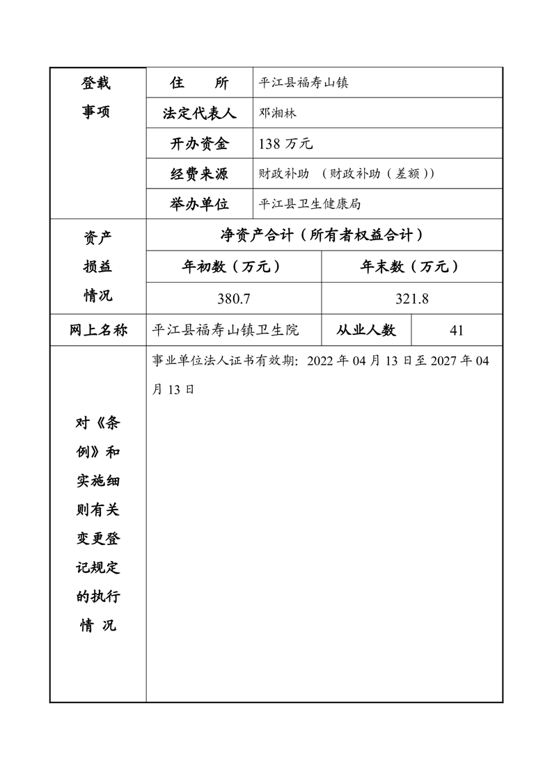 平江县事业单位法人年度报告公示