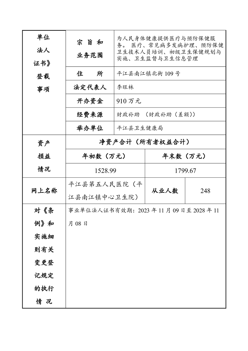 平江县事业单位法人年度报告公示