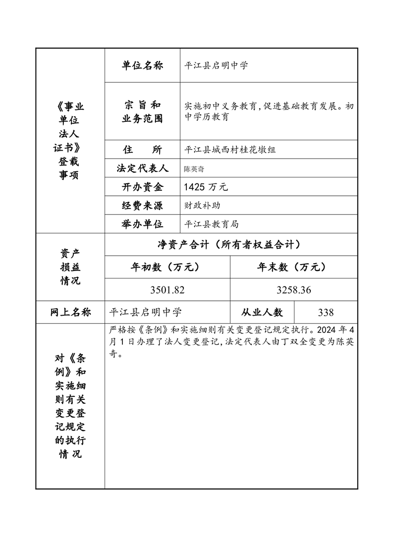 平江县事业单位法人年度报告公示
