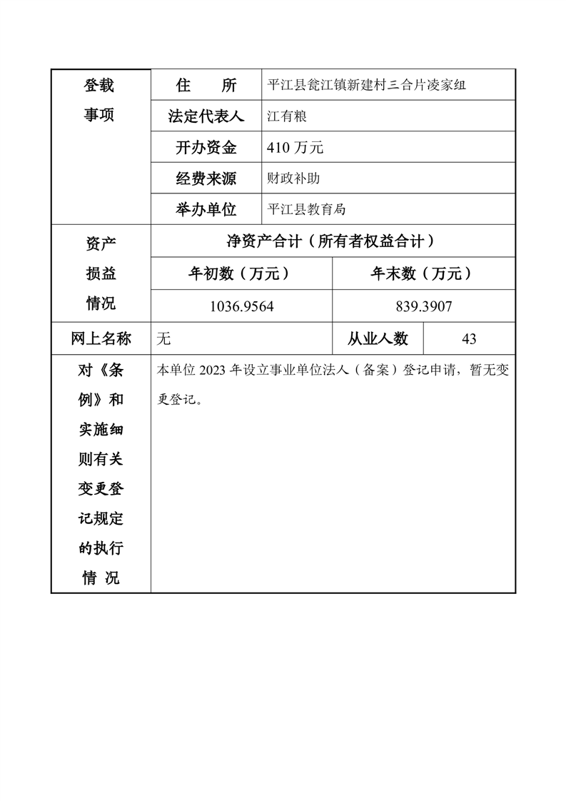 平江县事业单位法人年度报告公示