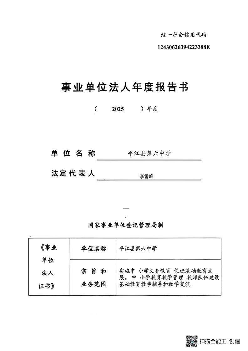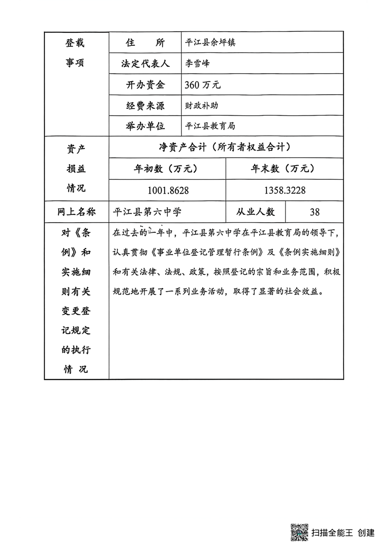 平江县事业单位法人年度报告公示