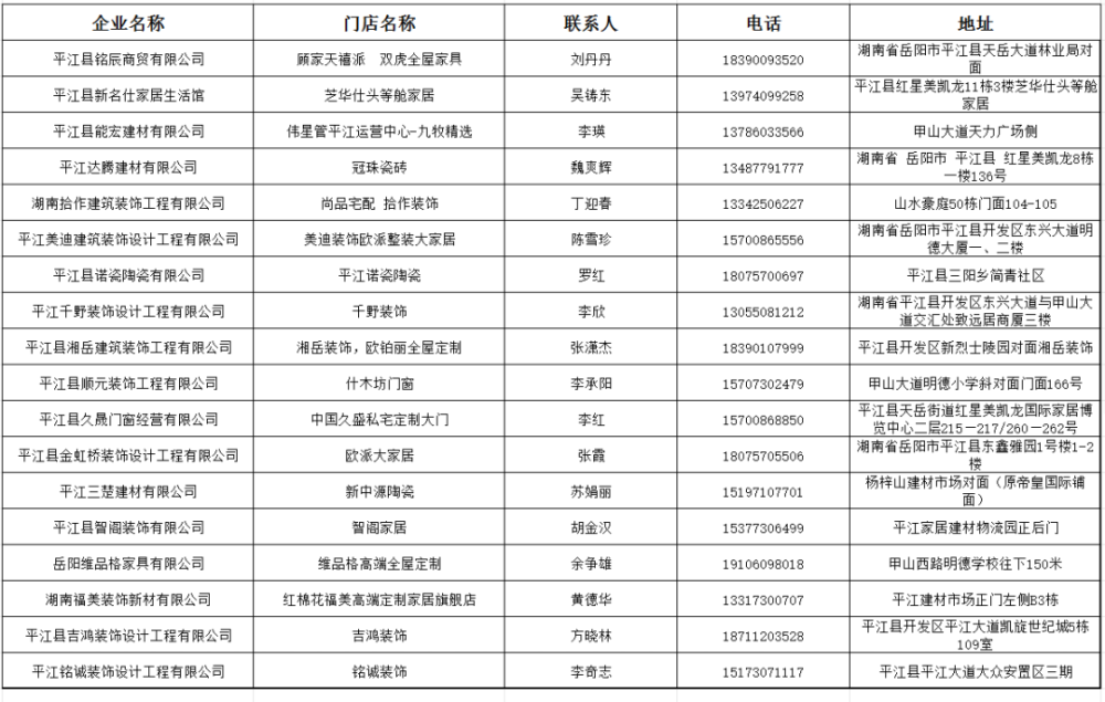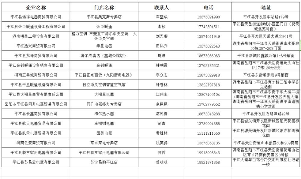 活动参与商户名单