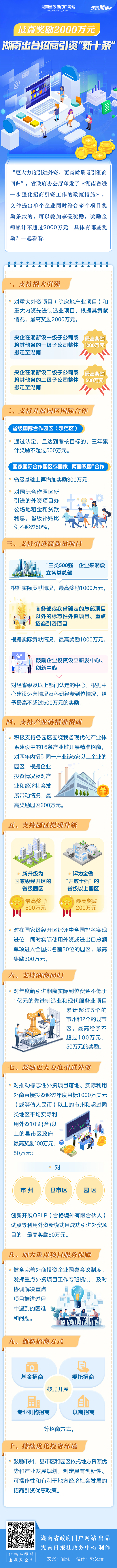 政策简读丨最高奖励2000万元!湖南出台招商引资“新十条”