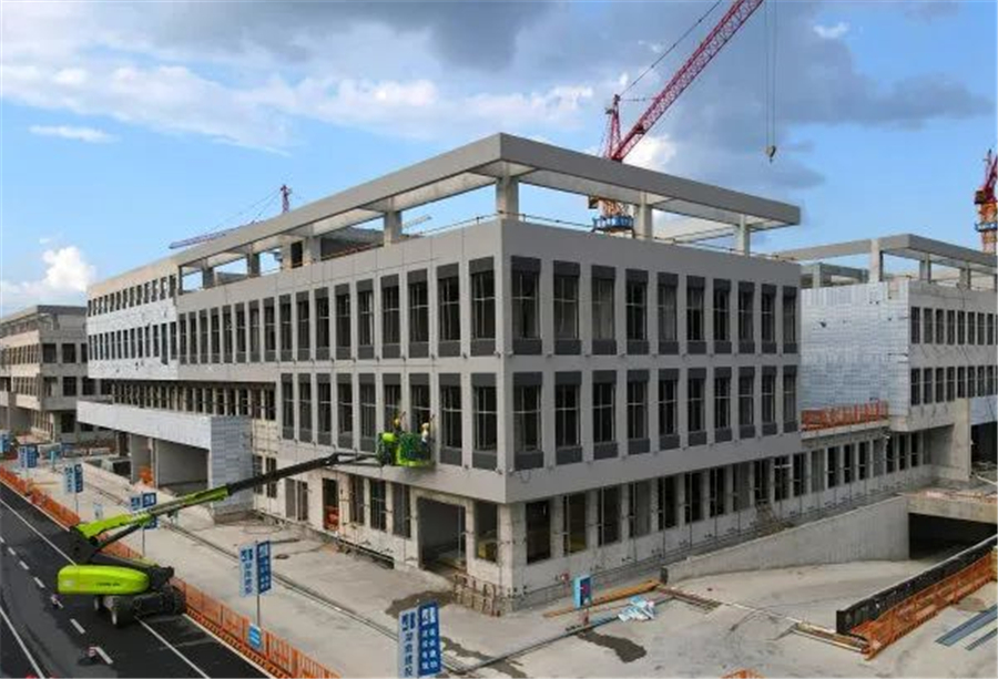 2023年8月23日,岳麓山实验室集聚区农科院片区,工人在进行外饰施工。湖南日报全媒体记者 赵持 摄