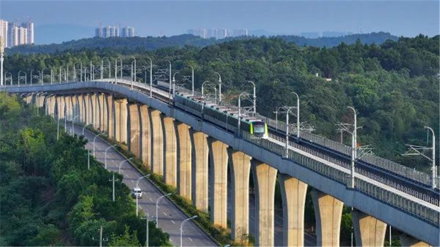 2023年8月14日,长株潭城轨西环线,地铁列车准备驶入坪塘站。湖南日报全媒体记者 辜鹏博 摄