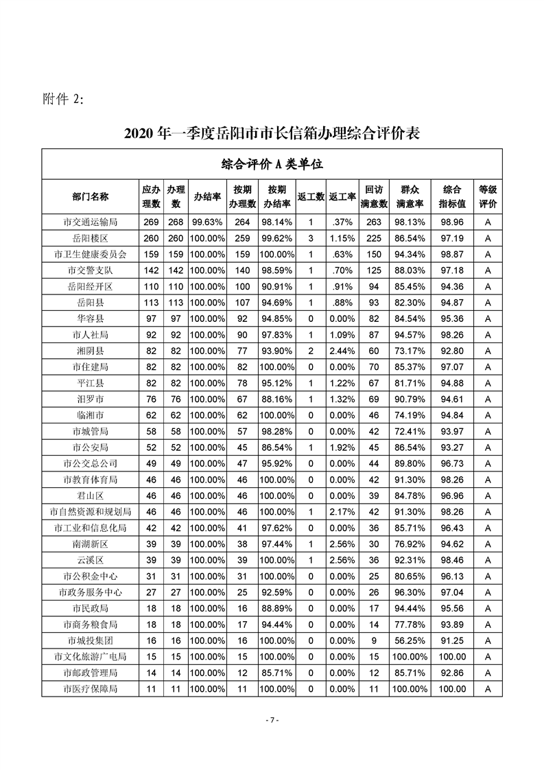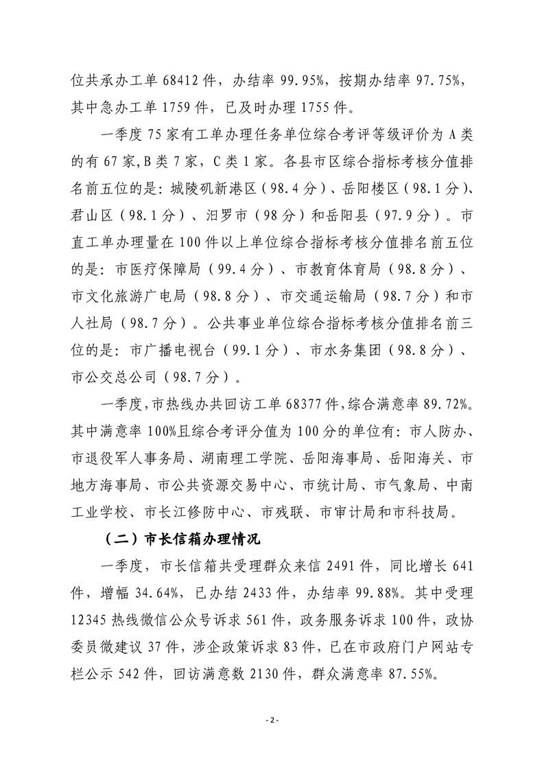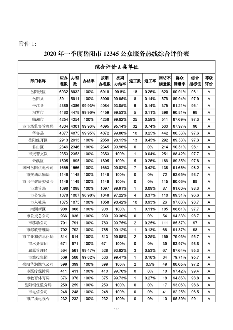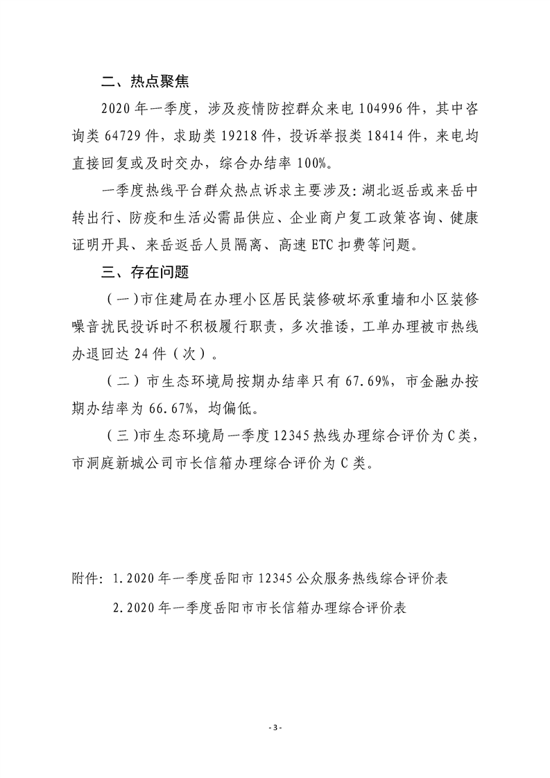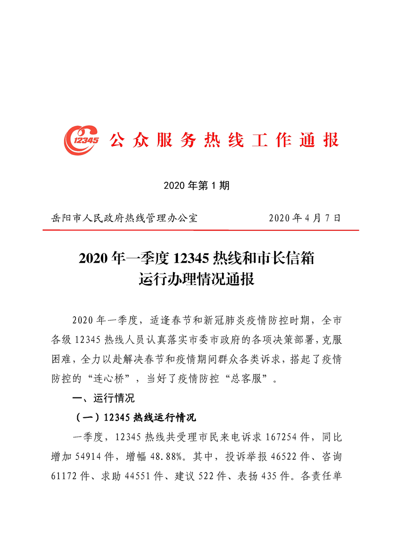 2020年一季度12345热线和市长信箱运行办理情况通报