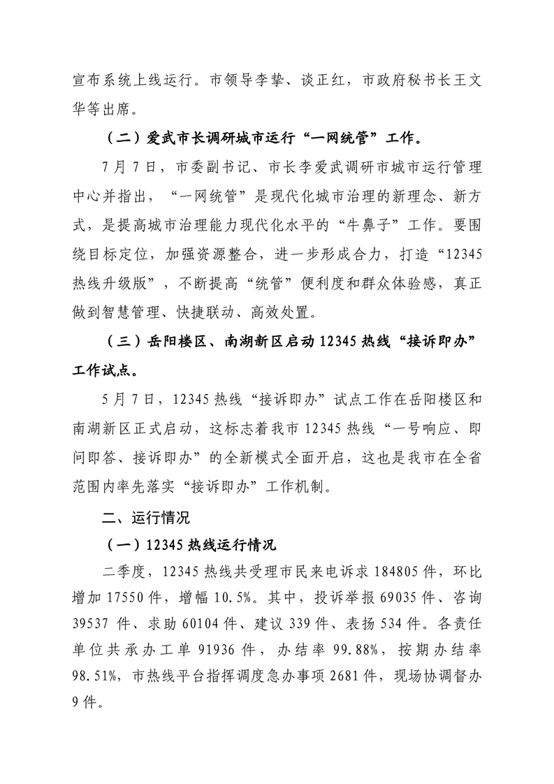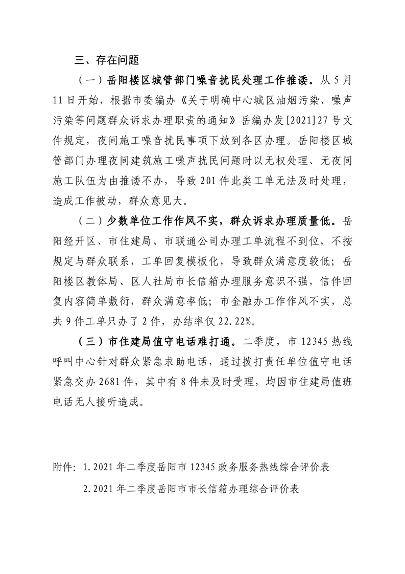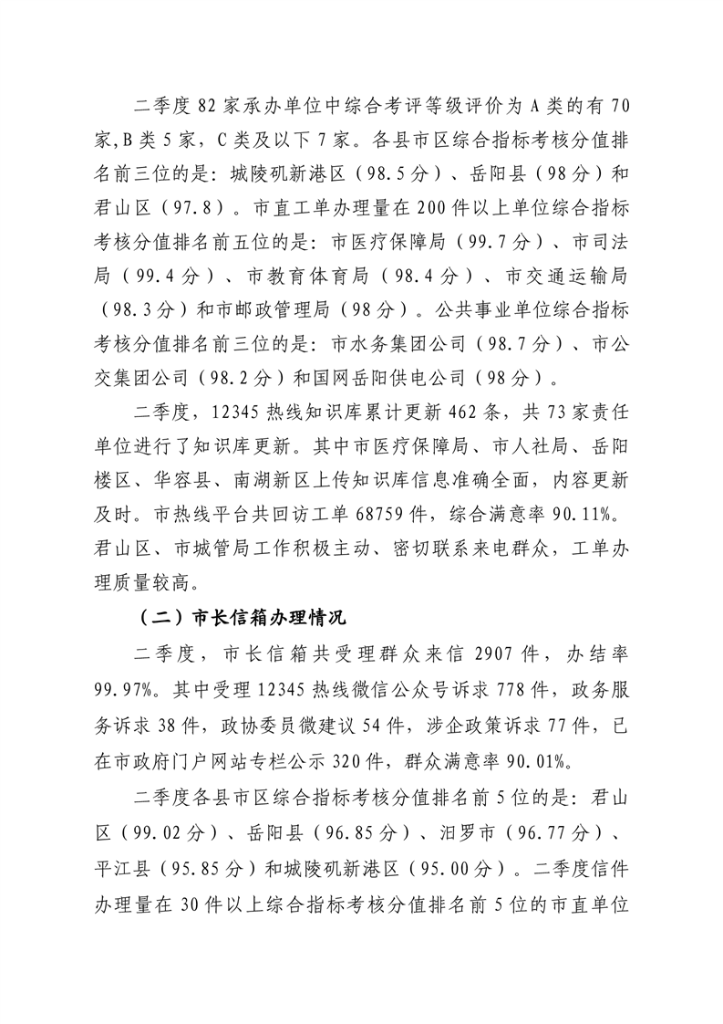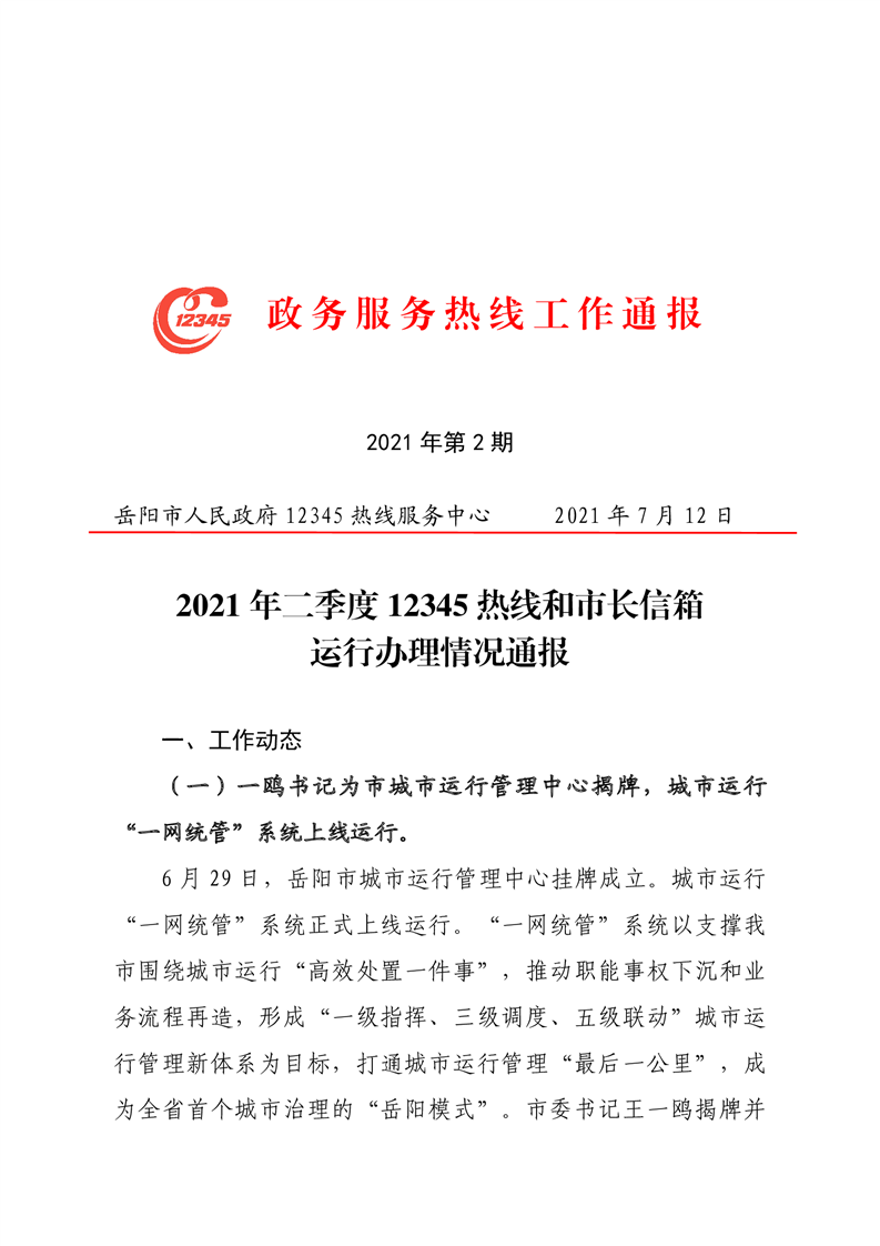 2021年二季度12345热线和市长信箱运行办理情况通报