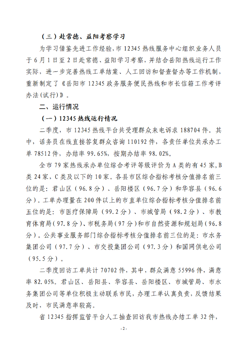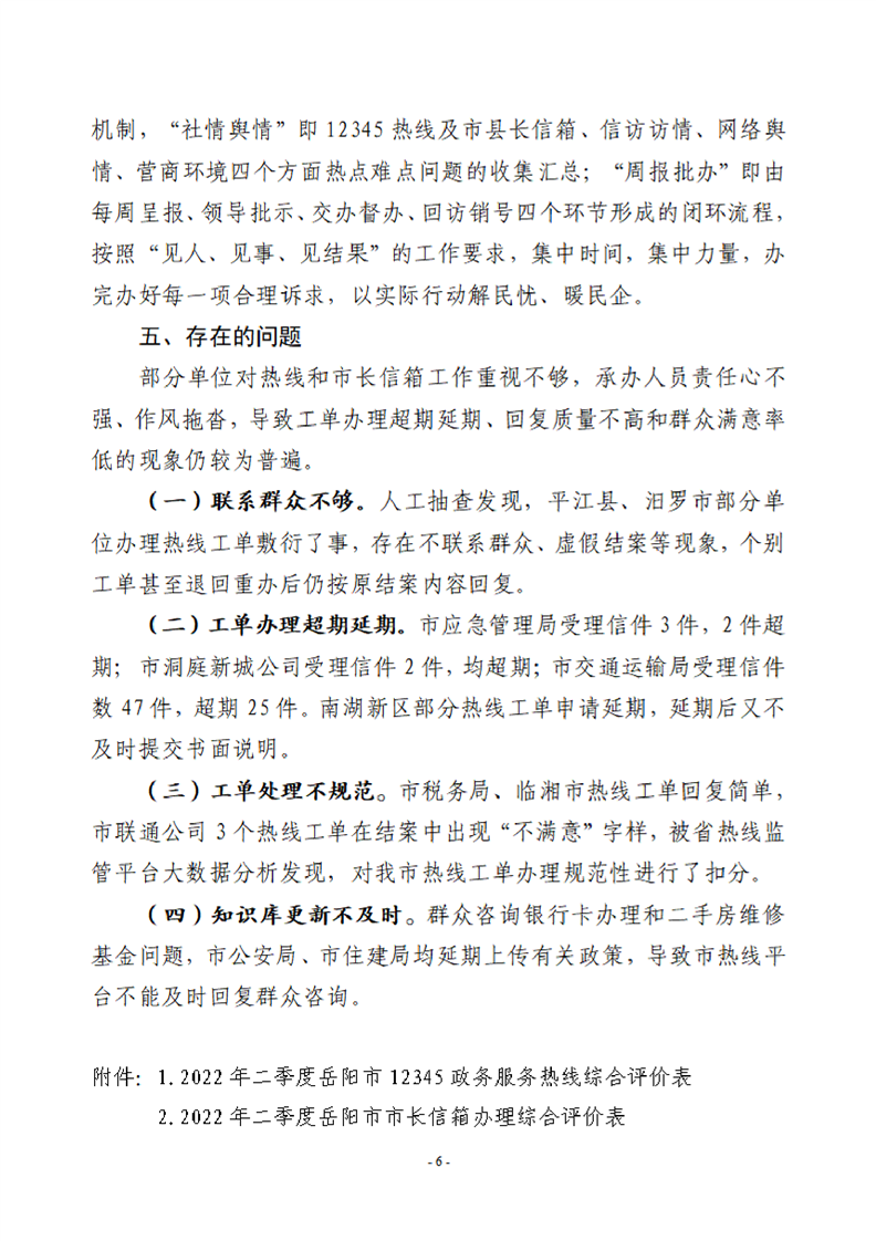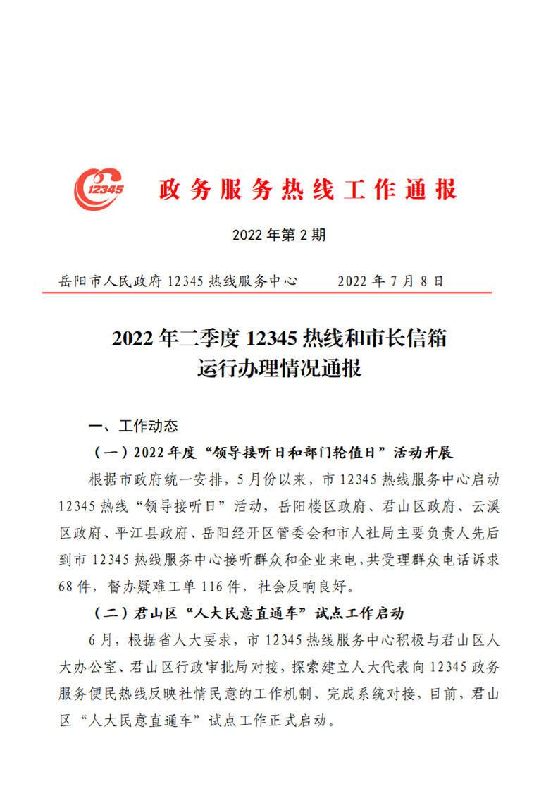 2022年二季度12345热线和市长信箱运行办理情况通报