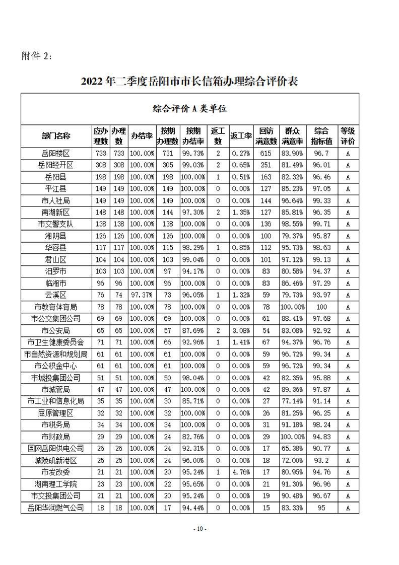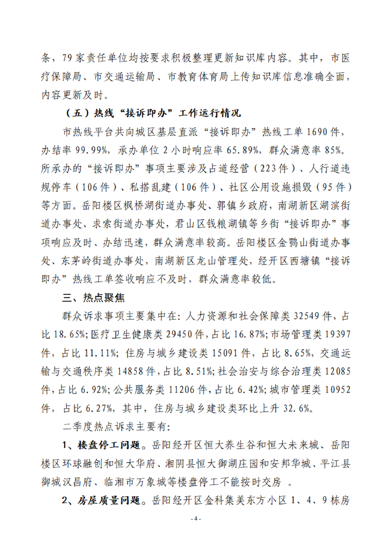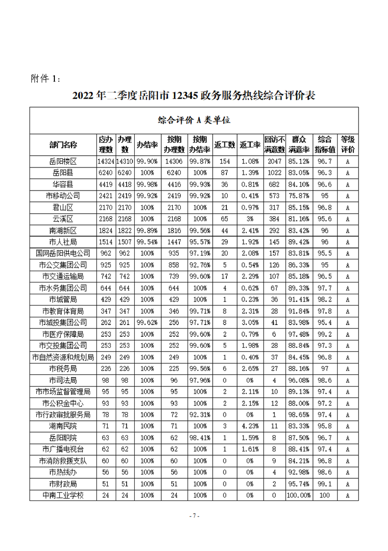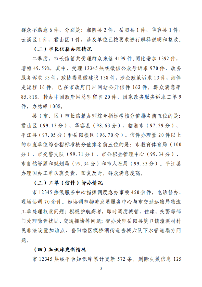 2022年二季度12345热线和市长信箱运行办理情况通报