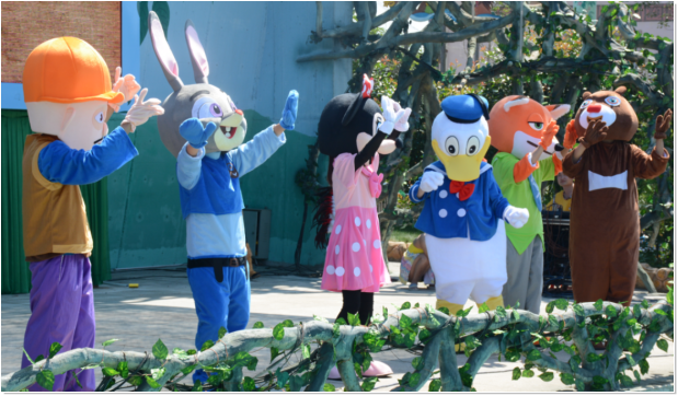 每日开园时分,由印第安小丑带领的动漫公仔迎宾队准时出现在园区大门口“穿越时空之桥”的3D画前面,以最热诚的姿态和最炫酷的pose迎接第一批入园游玩的贵宾。