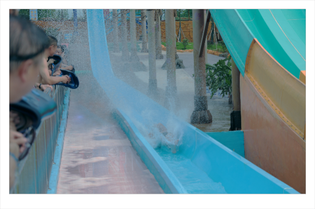 孕妇、心脏病、高血压、背脊及习惯性骨折患者,谢绝游玩水滑梯。