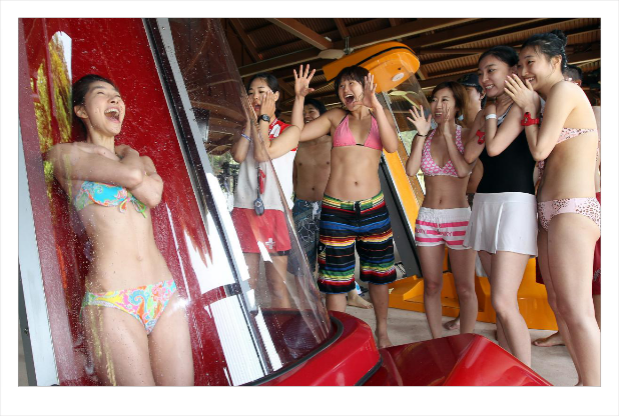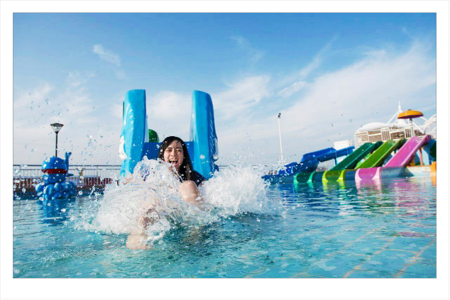 10、为保持园内水质的清洁,进入游乐场内必须更换泳装、拖鞋,且经过消毒池消毒。