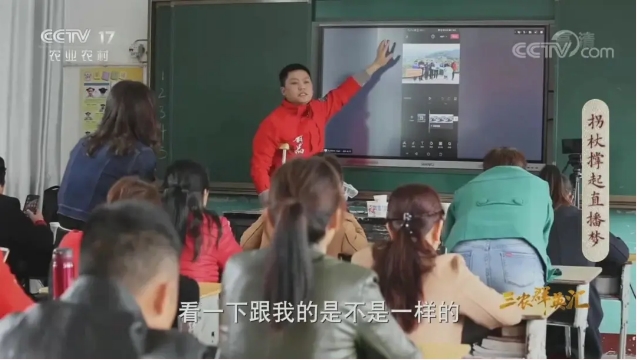 《拐杖撑起直播梦》还重点讲述了徐军培训村民直播带货和短视频制作,带动村民参与农产品直播推广,帮助村民更好创新创业。对未来的展望,徐军说就是拿上设备、直播相机,走到每一个村,让更多的人去了解到电子商务网络直播推广的魅力,能够真正把农村的田间地头变为一个创业的游乐园。