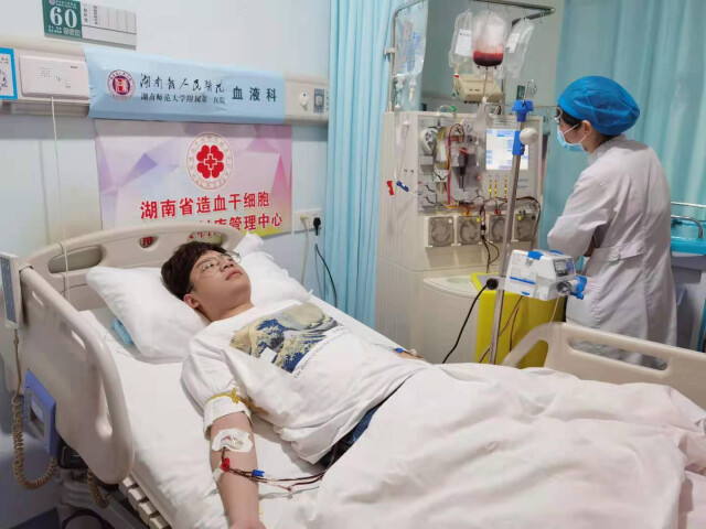 近日,在湖南省人民医院造血干细胞采集中心,平江小伙黄丹青捐献淋巴细胞成功,成为湖南省近两年来第一位捐献淋巴细胞的志愿者。