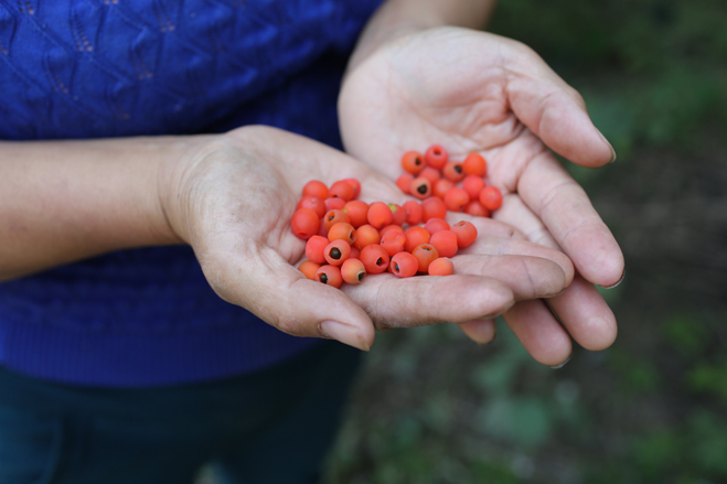 后来一位大嫂证实了我的猜测,还真是红豆杉。大嫂子随手摘了一把当零食吃了起来,并一定要我尝尝,放入口中,很甜很甜。记得家住南桥的天天说他们那里有棵很大很大的红豆杉树,便有很多人跑那里去摘红豆杉果实拿去浸酒,不用放多少便一瓶酒都能变甜,看来果真不假。