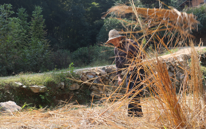 手割的稻草才好整理成把,正是收割过后的时节,从烂泥洞的陇里一路走进去,沿途田地一眼望去都是密密麻麻地站着的稻草把。在传统农耕时代最常见的场景放到如今却已经隐隐带着历史的印记。到将来某天收割机愿意开进来的时候,这些稻草把或许将成为关进记忆的一道风景吧。