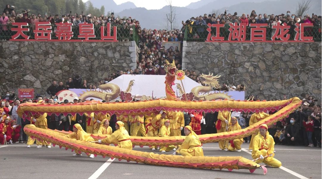 “二月二,龙抬头!”是中国民间传统节日,老百姓通常在这天以舞龙的方式祈祷风调雨顺。开幕活动举行了传统的古典祭祀和点睛仪式,之后有岳阳地区最长的40米黄龙亮相出演、盘石洲抛天锣鼓队的非遗展示、天岳幕阜山伏義八卦竹龙舞呈现。最后,由千人组成的群龙共舞作为压轴表演将活动推向了高潮。