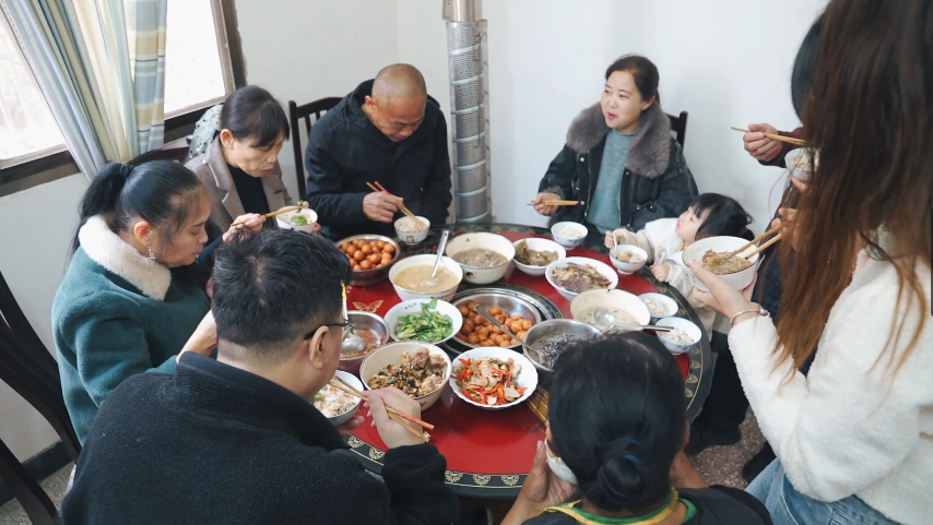 忙了一上午,饭菜上桌就是最幸福的时刻,大家围坐在一起聊聊家常,享受美食,抵御寒冬的最好武器便是这珍贵又不贵的人间烟火气。